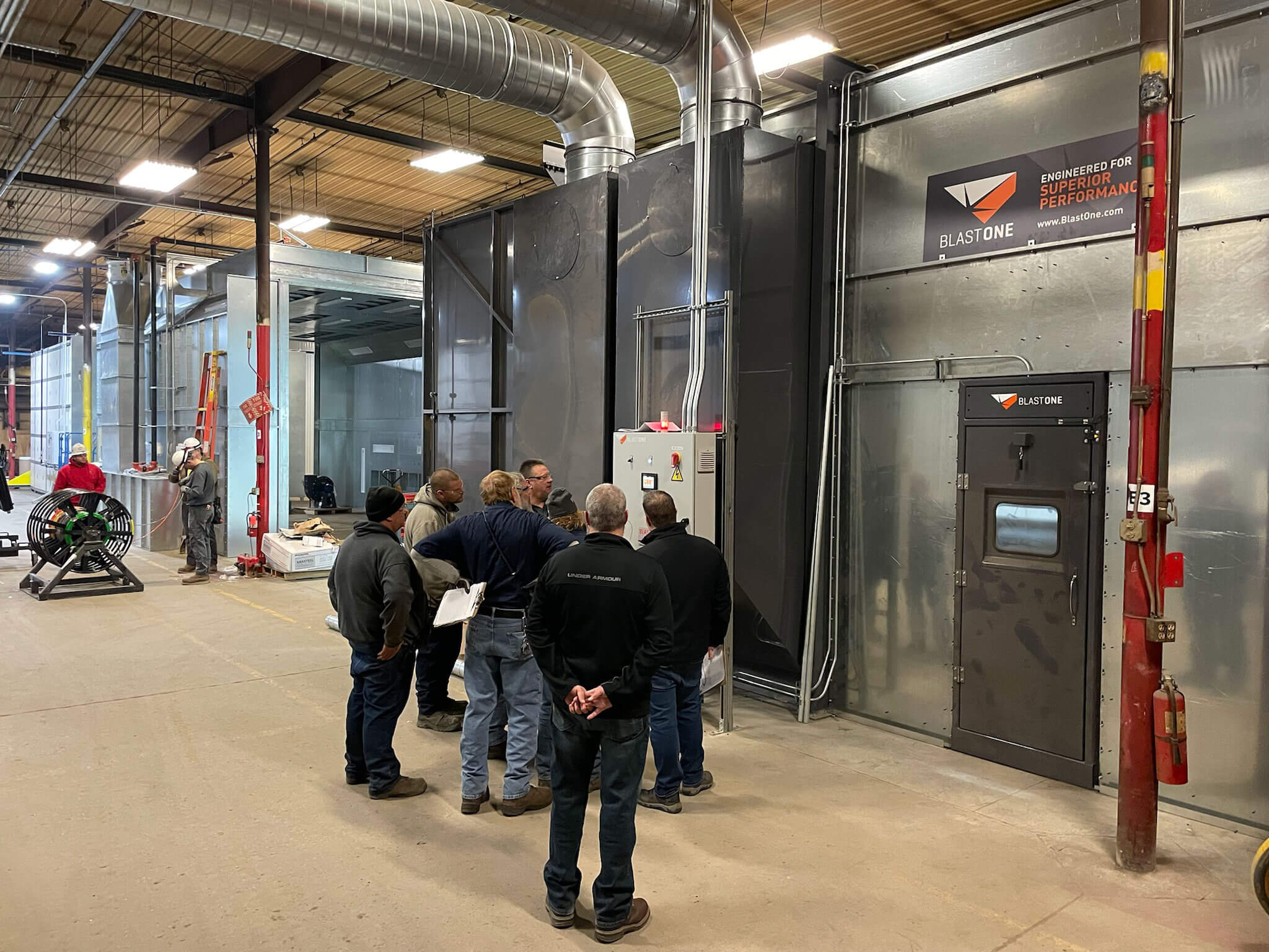 Abrasive blasting generates highly aggressive dust that requires specialized collection—not general-purpose units designed for welding or woodworking. BlastOne Dust Collection Systems are engineered specifically for abrasive blasting environments. OSHA recommends maintaining a minimum airflow of 50 ft/min past the operator to ensure visibility, safety, and compliance. By removing dust effectively, extending filter life, and reducing downtime, our systems provide the reliability and long-term durability needed in high-demand blast rooms.