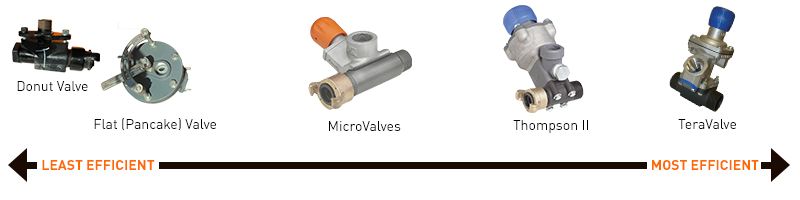 A popular misunderstanding is all these valves represent different methods of metering. That is not correct. Each column is actually a generational improvement on the previous valves.