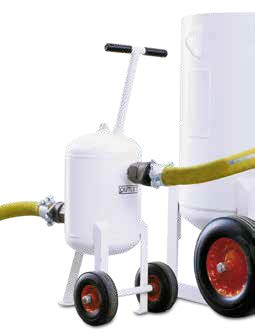 When the abrasive gets moist, it clumps, and it doesn’t fall naturally from the pot through the metering valve.