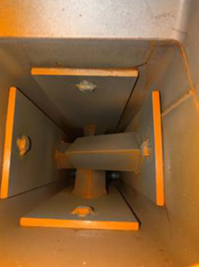 Client wanted to use existing recovery system under the rails. It was important to have sealed connection from the vacuum unit. This will prevent overflow from backups. A unique grit dispersal system was created. This stops overloading the screw auger on the main recovery chute.