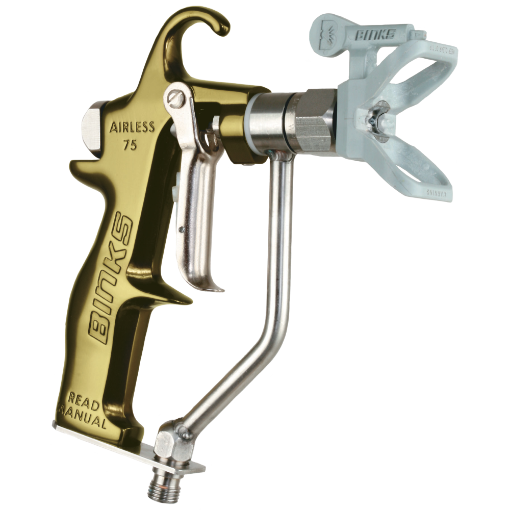 The Binks 75 series includes premium, high-pressure airless paint guns. Rated for up to 7500 PSI, they offer the following: