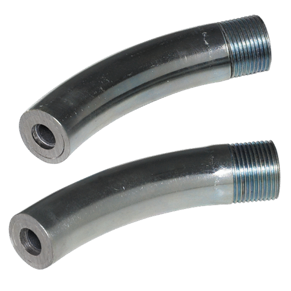 Drive around blind corners with care. Blast around blind corners with confidence! For those hard to reach areas, the banana nozzle is the perfect solution.  Nozzle design creates much less sideways thrust than an angled nozzle. Boron carbide nozzle with a steel jacket and thread. Available sizes - No 4, 5 or 6. 3/4" fine thread.
