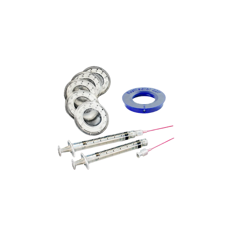 • Utilizes a plastic needle – no sharp hypodermic needles required!
