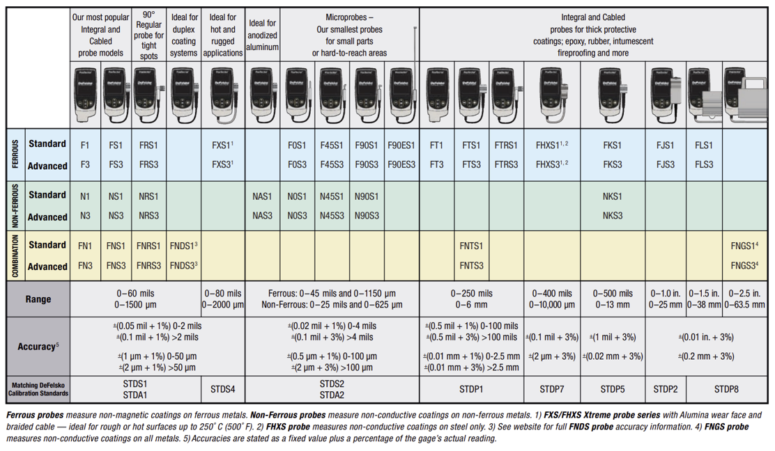 DeFelsko PosiTector® 6000 Series Coating Thickness Gage Probe Family