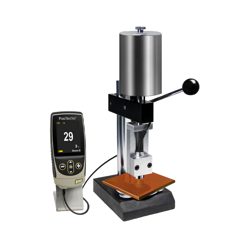The DeFelsko® PosiTector® SHD Test Stands represent an essential tool for professionals seeking to achieve the highest level of accuracy and repeatability in Shore hardness testing. By significantly reducing operator influence, these stands ensure that the PosiTector® SHD durometer's probe is placed consistently perpendicular to the material being tested, thereby enhancing the reliability of the measurement process. Available in two models, the SHDSTANDA and SHDSTANDD are specifically designed to complement Shore A and Shore D hardness testing, respectively. The SHDSTANDA is equipped with a 1 kg deadweight, ideal for the softer materials measured by Shore A standards. Conversely, the SHDSTANDD, designed for the harder materials assessed by Shore D standards, includes a substantial 5 kg deadweight to ensure accurate application of force during testing. These test stands are invaluable in laboratory, quality control, and production environments where precision is paramount. By facilitating a controlled, repeatable approach to hardness testing, the SHD Test Stands eliminate the variability associated with manual measurement techniques, leading to more consistent and reliable data. While the PosiTector® SHD durometer is not included with the test stands, they are fully compatible with DeFelsko's renowned SHD series, making them a vital addition to the toolkit of any technician, engineer, or researcher involved in material hardness testing.