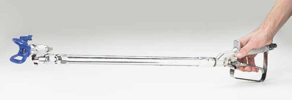 The Graco® Airless Pole Gun is tailored for professionals seeking an extended reach without sacrificing precision or control. Featuring a Contractor in-line valve for enhanced paint flow control and a CleanShot shut-off valve to minimize dripping and spattering, this pole gun ensures a clean, precise finish. The included RAC X tip and guard allow for precise spray patterns, making it ideal for a variety of surfaces and paint types. Rated for up to 3600 psi, this pole gun is robust enough to handle demanding painting projects while delivering exceptional results. Key Features:- Extended Reach: Allows for painting in hard-to-reach areas without ladders.