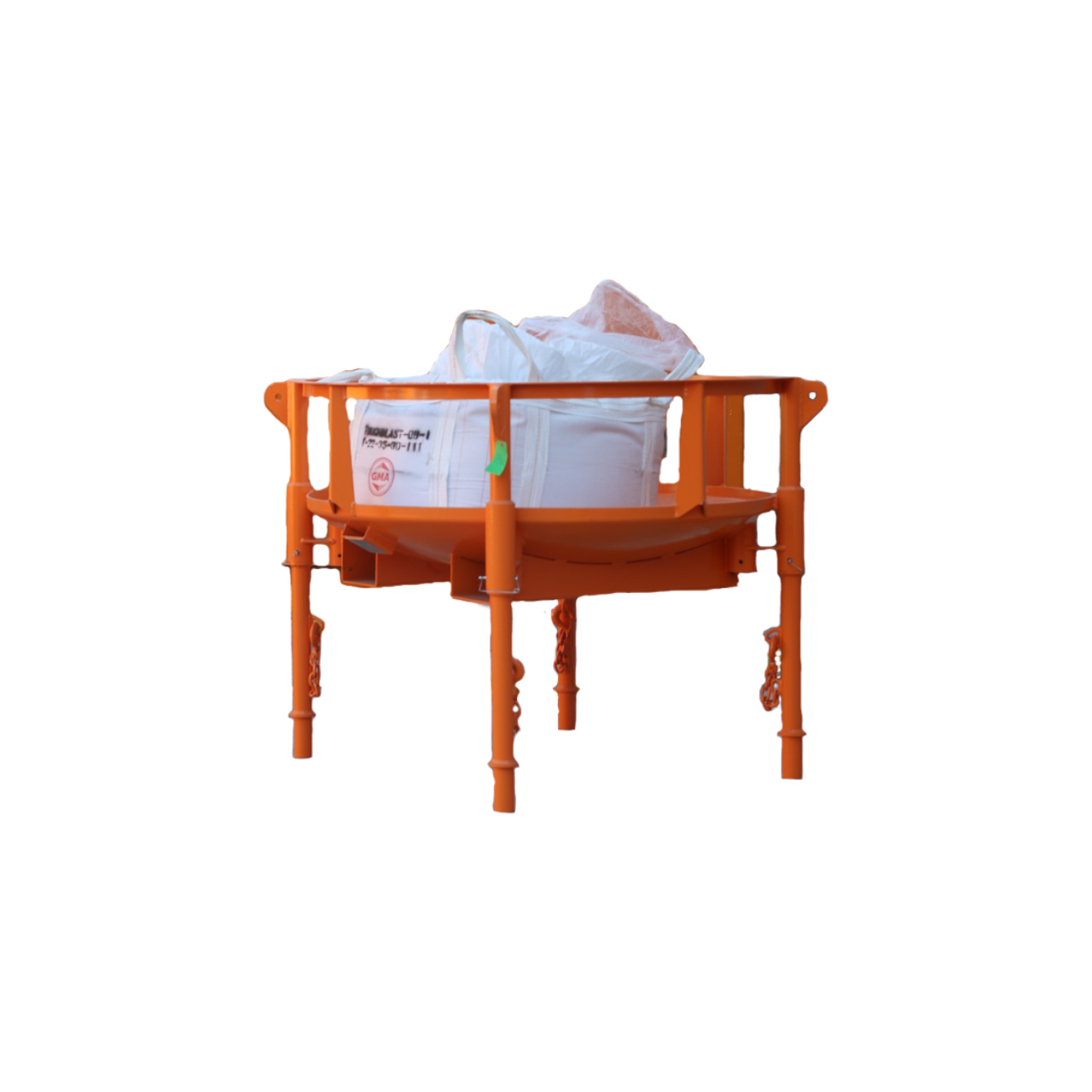 The Bulk Bag Rack for Axxiom / Schmidt Mega Bulk Blasters is a safety-forward accessory built for heavy-duty abrasive loading tasks. This optional add-on simplifies bulk bag handling while significantly enhancing job site safety. Available in three configurations—a round version for both 120CF and 160CF units, and square models sized specifically for either the 120CF or 160CF vessels—this rack helps streamline material transfer while minimizing operator fatigue and risk. The round rack (MPN: 8400-018-85) stands out with its solid round plate bottom. This low-profile design not only provides stronger structural support and a guided flow for abrasive transfer but also acts as a physical barrier between the operator and the suspended abrasive bag. Its compact design reduces the lift height required for loading, especially when compared to standard Schmidt racks. Additional built-in features include forklift pockets and height-adjustable legs, ensuring quick transport and a universal fit across setups. The square racks are available in two dedicated sizes. The 120CF version (MPN: 8400-018-84) comes in white and is tailored for precise alignment with the smaller Mega Bulk Blaster model. The 160CF version (MPN: 8400-018-73) delivers maximum support and safety for the larger vessel setup.