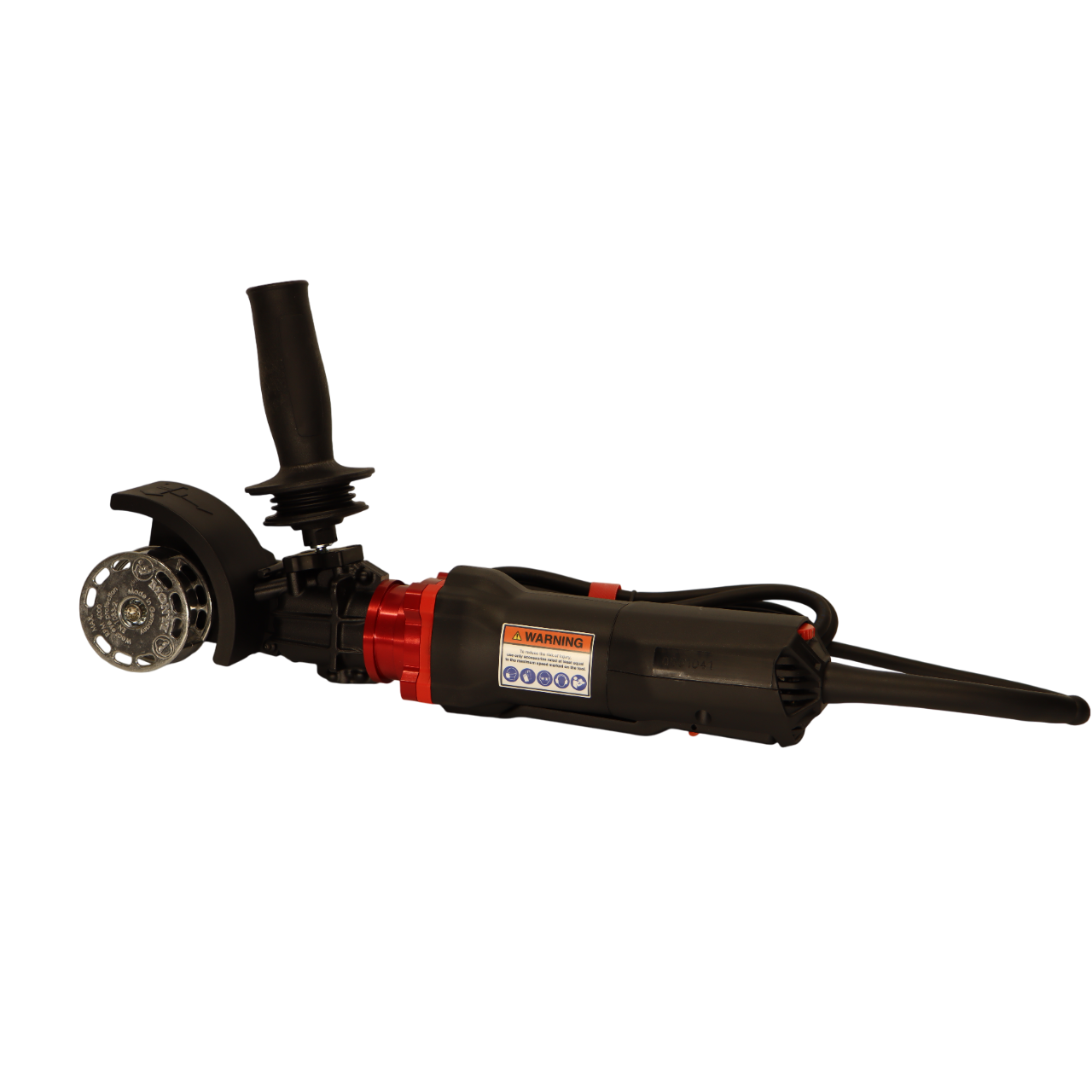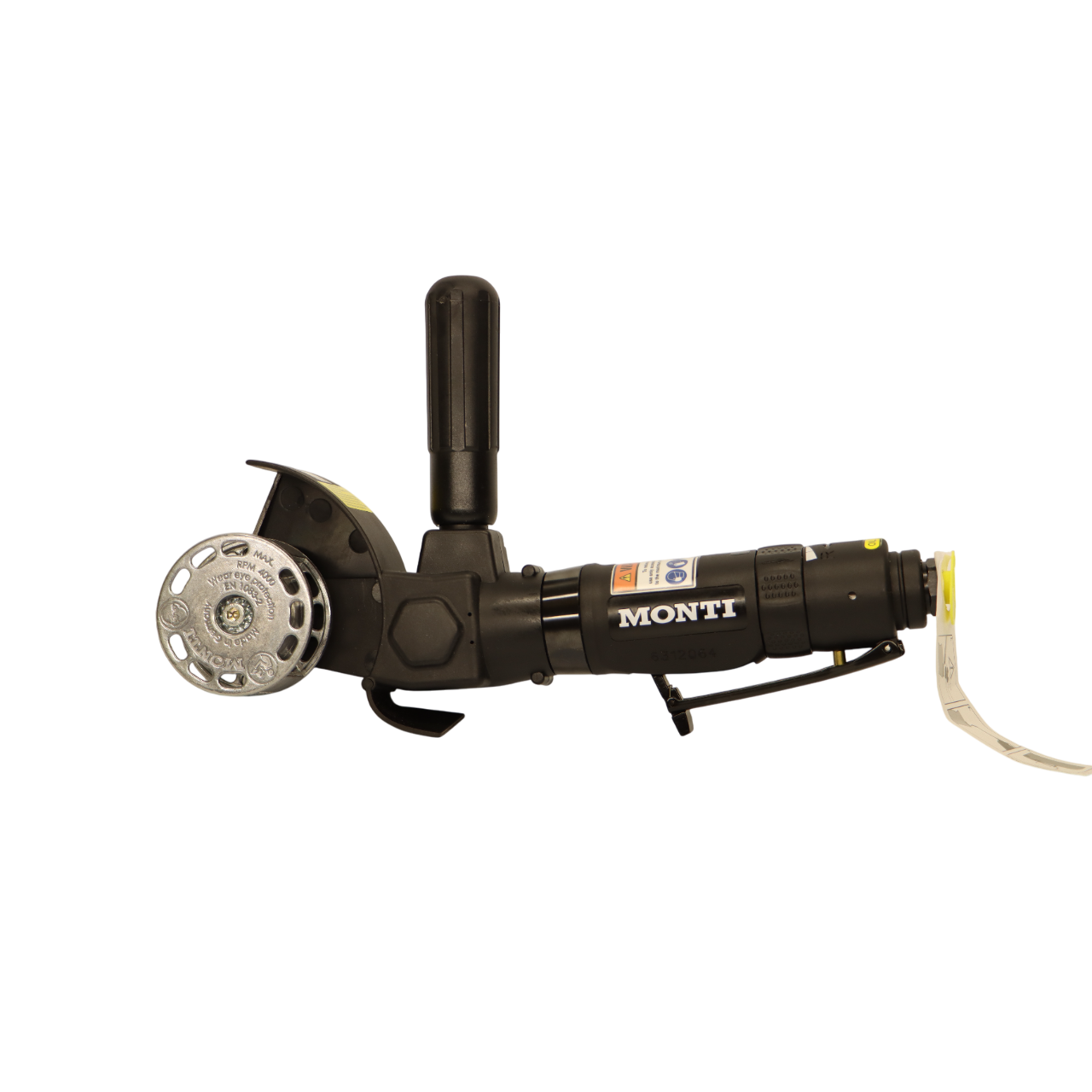 - Axial / Die Grinder (not pictured on this page): Also pneumatically powered, this unit mounts the belt at 90° for use in door jambs, rain channels, wheel housings, and other tight spaces. It requires 14 CFM at 75PSI, using 3/8" shop air line. This unit can be used with both MBX and Bristle Blaster belts and comes with a removable accelerator bar. This unit can be found on our MontiPower Bristle Blaster page.