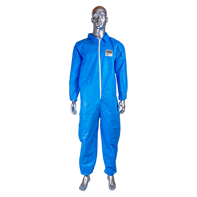 Palmer Safety FR Blue Disposable Coveralls are breathable, spun polypropylene disposable coveralls designed for dry particulate protection in industrial work environments. This product family includes three configurations so crews can choose the coverage level that fits the task, from a standard collar design to options with a hood and booties.