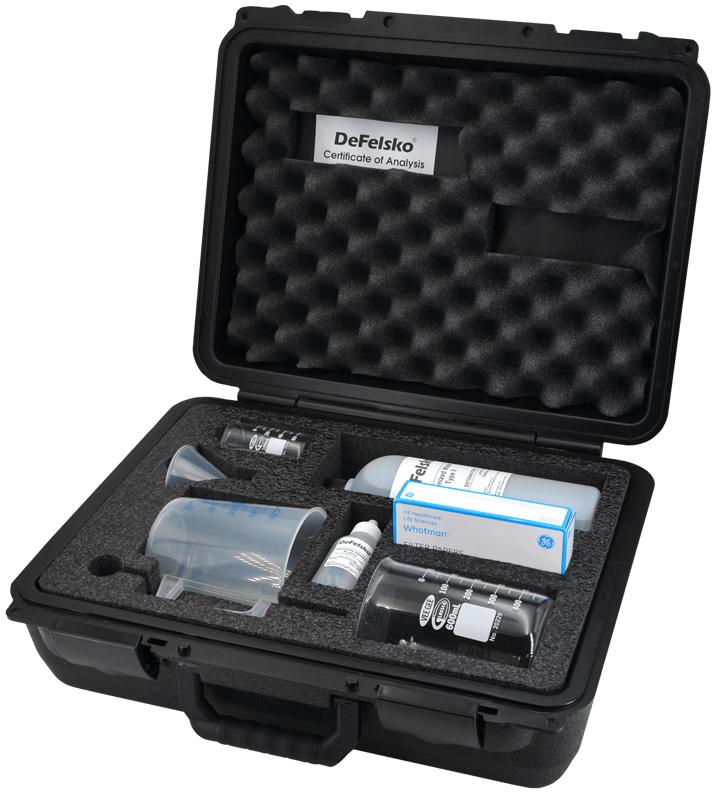 The DeFelsko® PosiTector® SST Abrasives Test Kit is a meticulously assembled set of tools designed to empower professionals in accurately determining the concentration of soluble salt contaminants within blast cleaning abrasives. This comprehensive kit is an indispensable resource for ensuring that your surface preparation meets the highest standards of quality and safety, as dictated by ASTM D4940 and ISO 11127-6. Fully portable and equipped with a range of precision instruments, the kit allows for the quick and efficient testing of abrasives, whether in the field or the laboratory. The inclusion of both glass and plastic beakers, along with a plastic funnel and paper filters, facilitates the preparation and filtration of samples. The provided 1L of deionized water and 60ml certified conductivity standard, coupled with a stainless mixing rod, ensure that each test is conducted with the utmost accuracy and reliability. The calibration solution included within the kit serves not only to verify the accuracy of your PosiTector SST or other conductivity meters but also comes with a Certificate of Analysis for added assurance. Additionally, the kit's consumables, such as the certified conductivity standard and deionized water, are readily available for replenishment, ensuring long-term utility and effectiveness.- Comprehensive kit tailored for accurate soluble salts measurement in abrasives.
