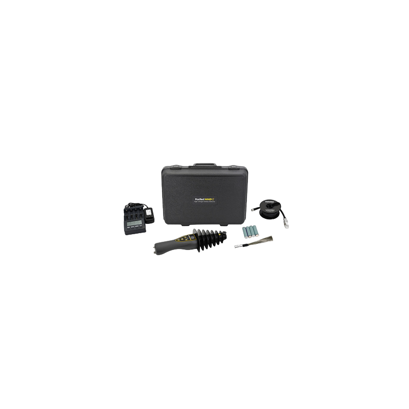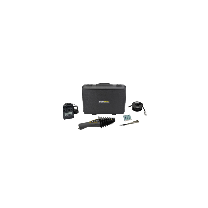 The PosiTest® HHD Series High Voltage Holiday Detector Kits (SKU: P-INDHHDKIT) from DeFelsko represent the pinnacle of coating flaw detection technology. Designed to identify holidays, porosity, pinholes, leaks, and other discontinuities in coatings and linings exceeding 10 mils (250 microns), these kits are ideal for ensuring the integrity of critical surfaces. Engineered with advanced pulse and continuous DC technology, the PosiTest HHD Series offers unparalleled precision and versatility. Lightweight and ergonomically designed, these detectors reduce operator fatigue, making them perfect for prolonged use in demanding environments. The automatic voltage calculator adjusts settings based on coating thickness, eliminating guesswork and streamlining inspections. The PosiTest HHD Series is available in four comprehensive kit configurations to suit varying needs:- PosiTest HHD Kit: Stick-type with Pulsed DC Output, featuring a robust 72 Wh Li-ion battery, a 20″ Electrode Rod (or 5″ substitute), and a durable Pelican Storm Case.