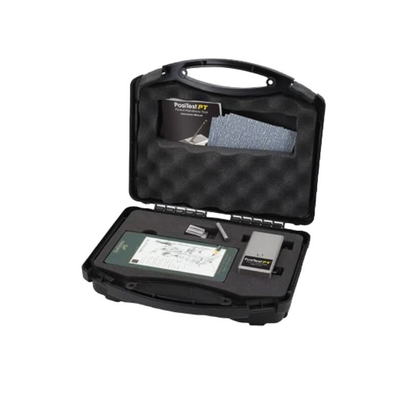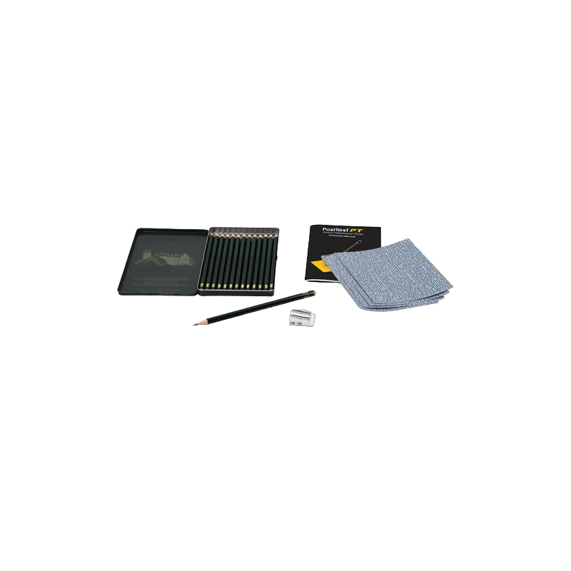 Designed for professionals in the coatings industry, the PosiTest® PT Pencil Hardness Test Kit is an essential tool for evaluating the durability of paint, lacquers, resins, and films. It comes with a comprehensive set of 14 quality graphite pencils, ranging from 6B (softest) to 6H (hardest), allowing for a broad spectrum of hardness testing. The kit also includes a custom aluminum pencil sharpener, designed specifically for this test, which ensures precise graphite length for accurate testing. The optional Pencil Cart, included in the Complete Kit, standardizes the force applied during testing to 7.35 N at a 45° angle, ensuring consistent results across tests. The kit is made to conform with multiple international standards, making it versatile for global use. Each component, from the pencils to the leveling rod and thumbscrew for pencil changes, is designed for ease of use and accuracy.- Designed for a wide range of coating hardness testing.
