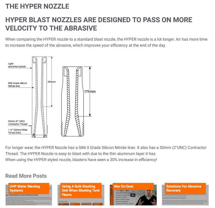 - Maximum performance achieved when blasting above 120 psi nozzle pressure.