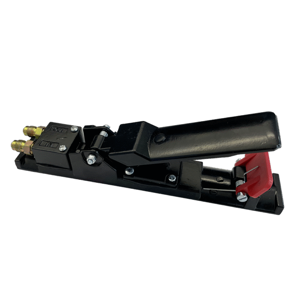 How to Properly Attach Your Deadman Control: Attach the handles to the blast hose with clamps near the nozzle itself. Create a loop line with the twinline/control cord that comes at least 6" away from the hose, runs 6" parallel to the hose and comes 6" back to the hose. With heavy duty adhesive tape, attach the twinline to the hose where the loop line ends by wrapping the tape around the inline twice and then again around the hose. This train-relief is only required on the first connection near the control handles. Secure the twinline and hose with heavy duty adhesive tape every 3 feet.