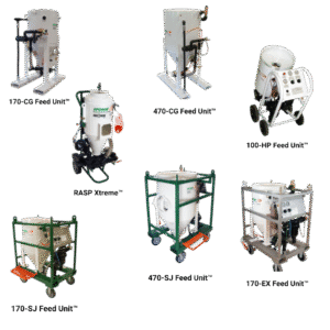• This sponge abrasive is loaded into a specialized feed unit (aka sponge blast pot) and the blasting process is set up.