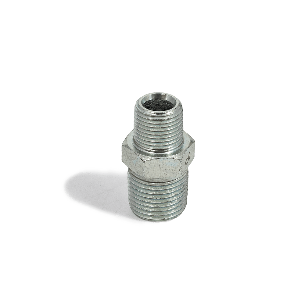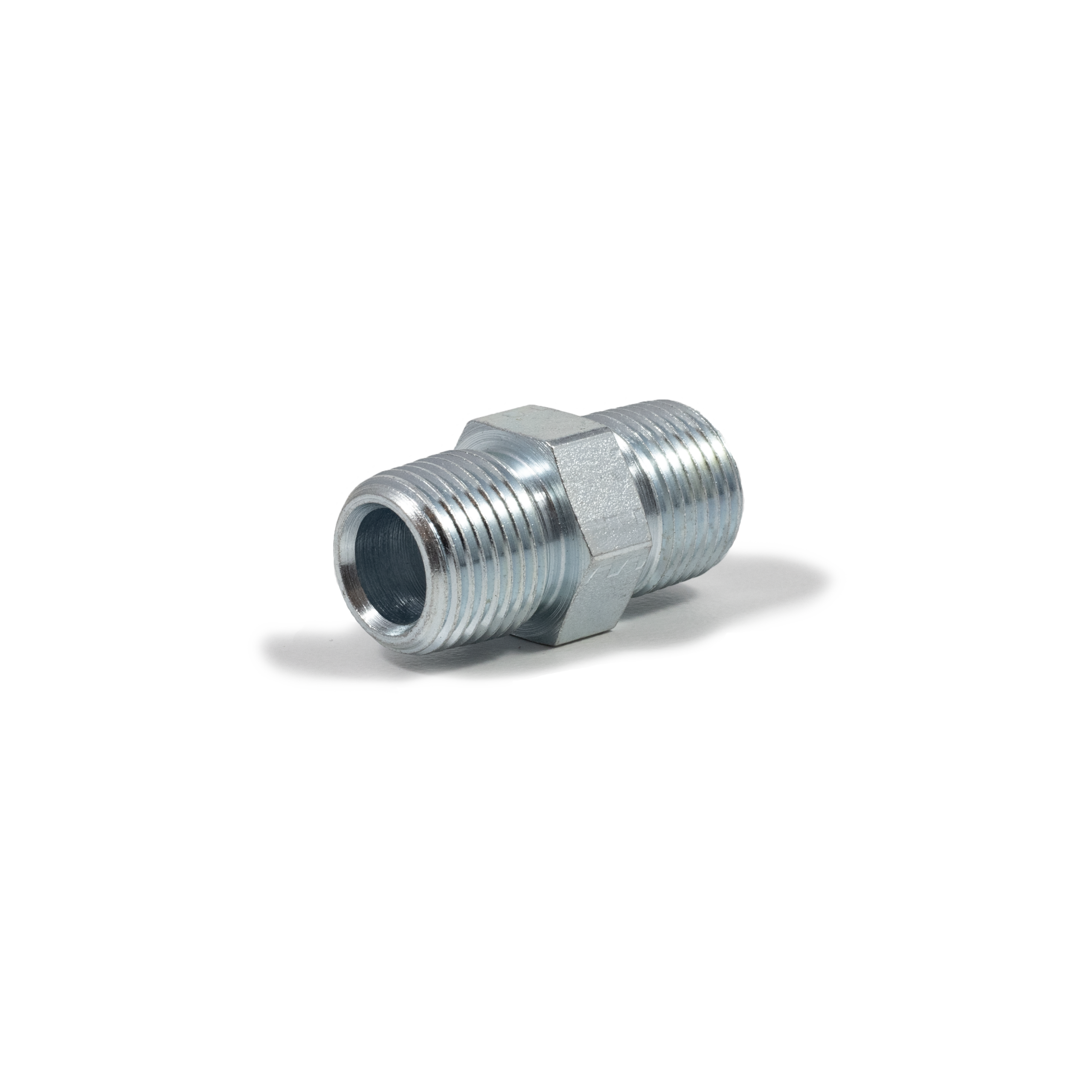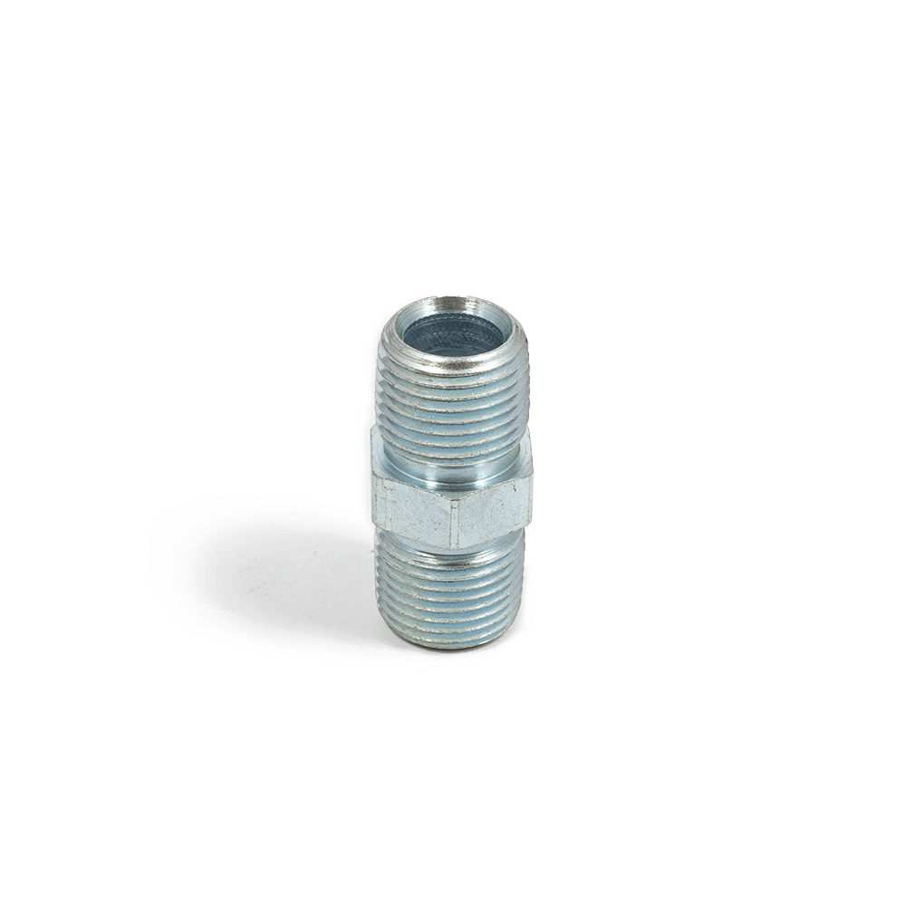 • Zinc-plated steel pressure-rated hex nipples for use as an airless spray hose joiner and for other industrial connections