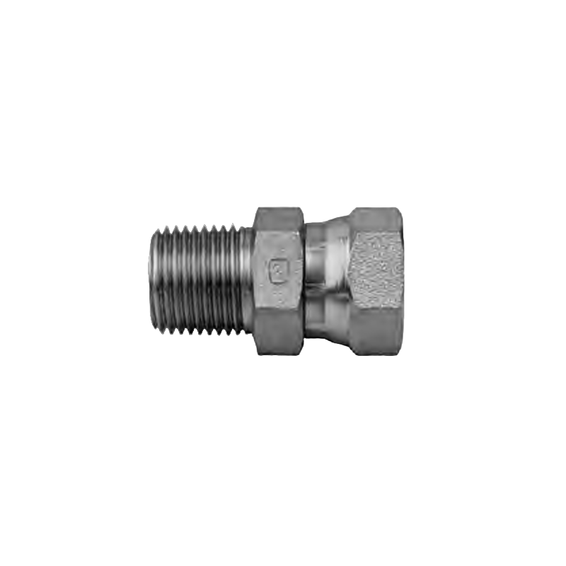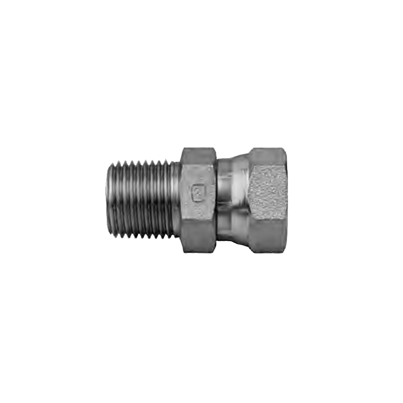 The Union Adapter, featuring a male NPT end and a female swivel nut, simplifies fit-up in complex piping systems. The swivel nut is designed to 'lock up' rigidly once tightened, providing a secure and leak-free connection.