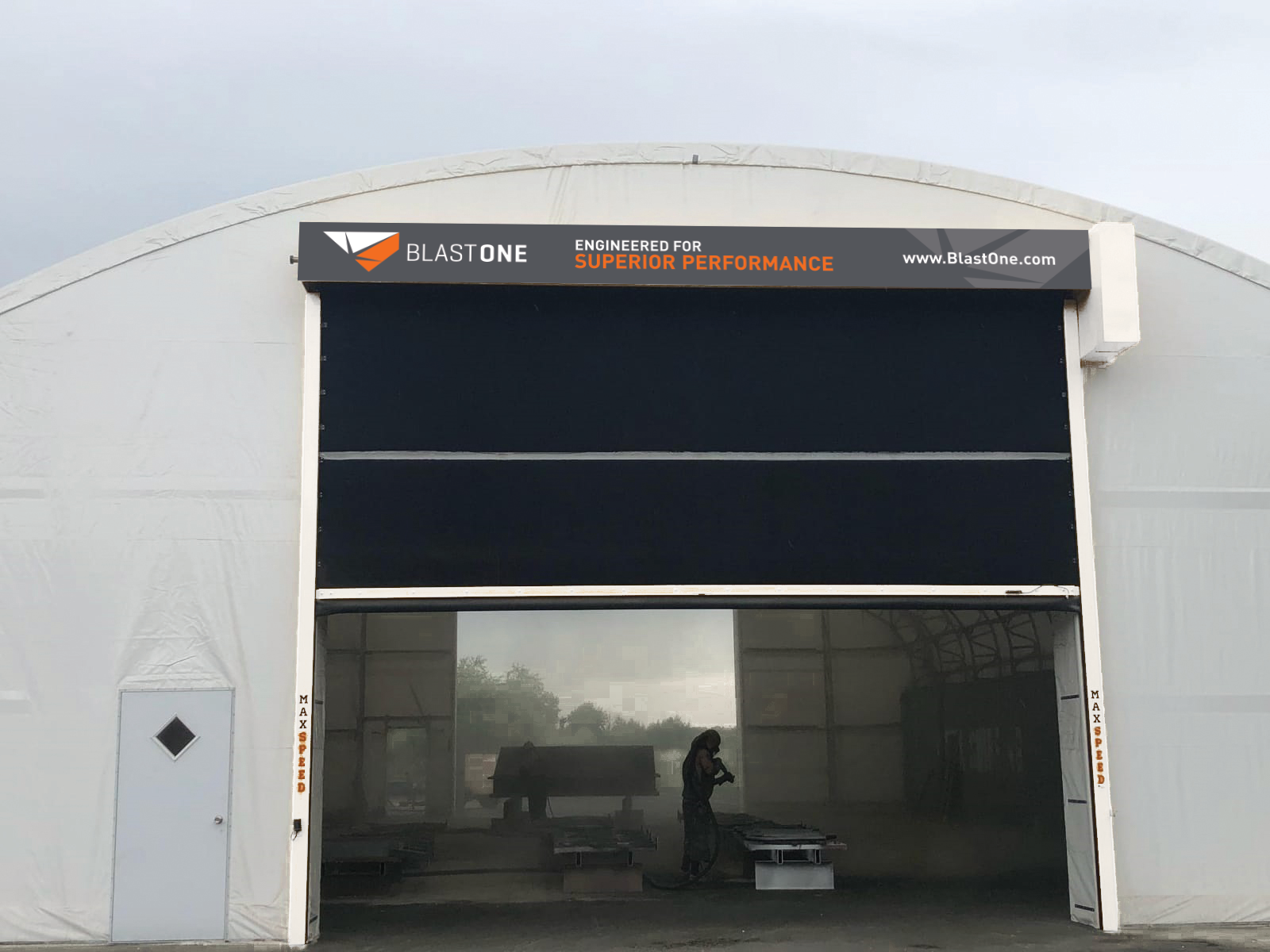 The Temporary Modular Blast room is designed to be a semi-permanent solution for those who need to conduct blasting operations in a large, controlled environment, regardless of climate conditions. These booths are 100% water-proof and can be built to withstand winds of up to 190mph (300km/h). Typical lifespan for these types of booths range from 5-8 years, though some 15 year+ installations remain in use to date. The structure is designed to be easily dismantled, relocated, and assembled as needed. A fully functional booth can be built start-to-finish within a week. Many booths feature a simple scoop abrasive recovery system as its solution for grit recycling. These booths can accommodate multiple blasters at a time, blasting multiple shifts a day. The booth comes in various sizes, making it fit most sandblasting applications. Temporary Dome Shelter Blast rooms tend to be massive, some measuring longer than 500 ft. Thanks to its modular design, there are no real limits in how large it can be. However large an area of sandblasting operations, this blast booth can be configured to contain it and keep you blasting in all types of weather. Due to its structural design and the materials used to construct, this booth is a far more economical option than building a weather-proofed conventional blast room of the same scale.
