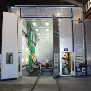 Proprietary airflow design that lowers energy consumption, enhances ventilation, and ensures the efficient removal of particles from the blasting and painting areas.