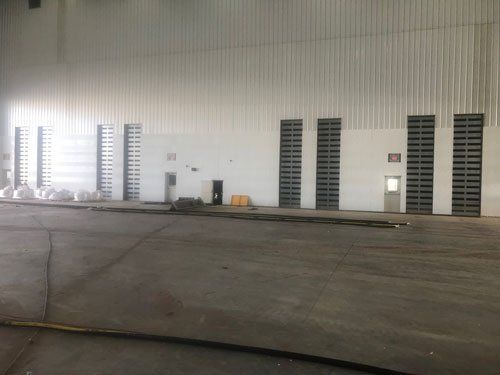 Large dividing door to separate blasting from painting operations